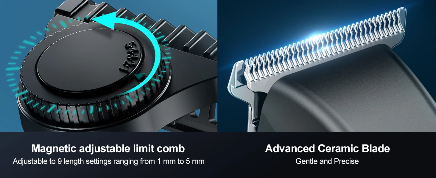 4.with an adjustable limit comb to adjust the trimming length you want.